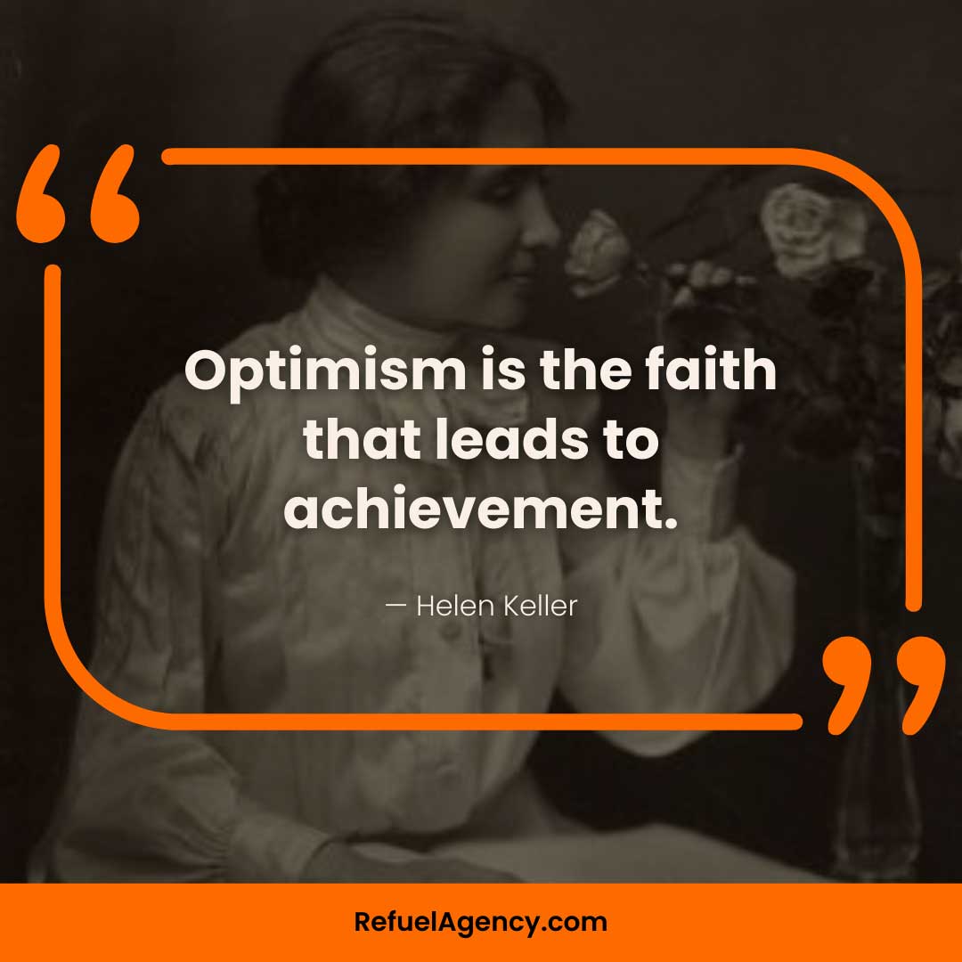 - “Optimism is the faith that leads to achievement.” — Helen Keller