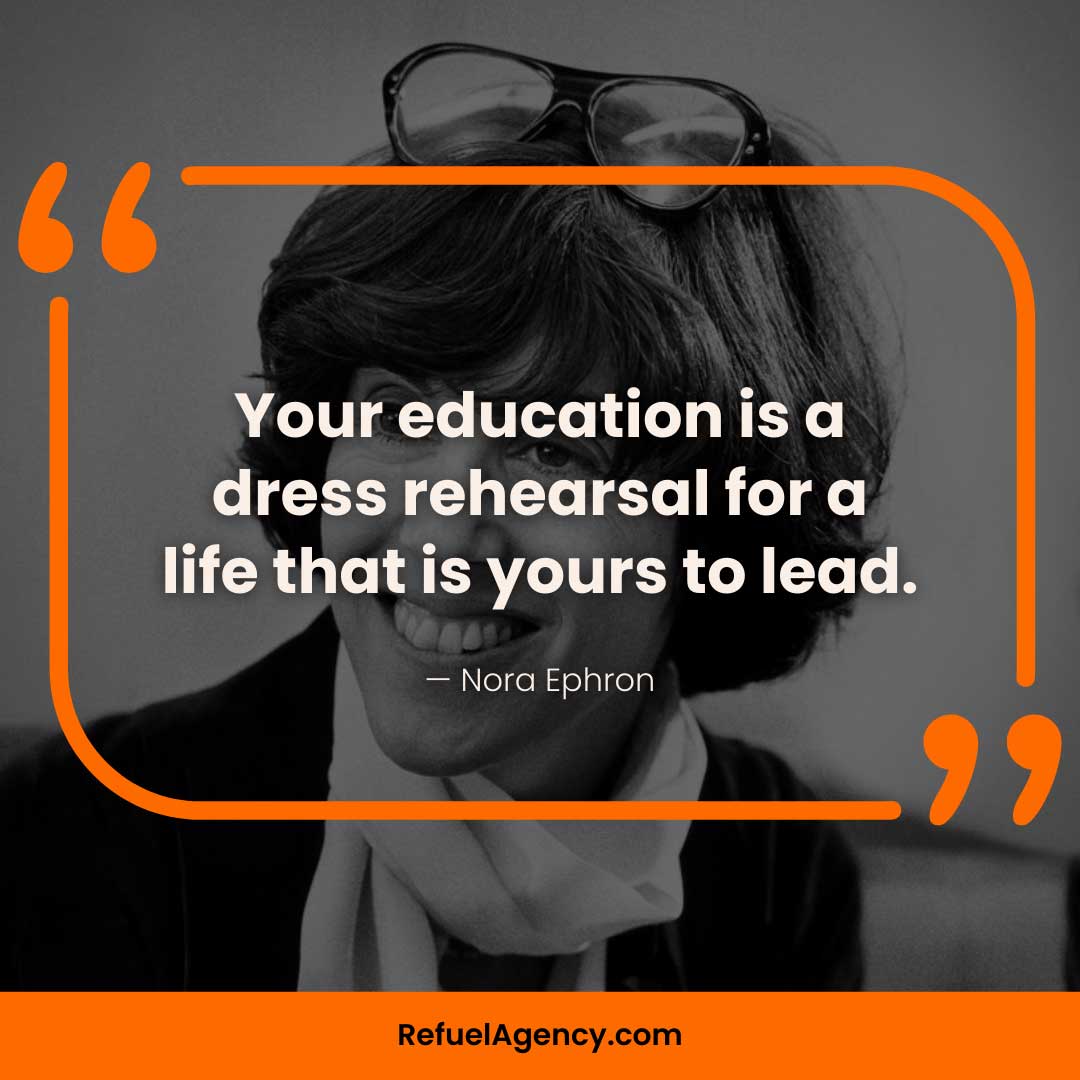 - “Your education is a dress rehearsal for a life that is yours to lead.” — Nora Ephron