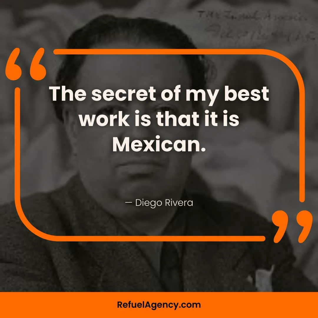 - “I know now that he who hopes to be universal in his art must plant in his own soil. The secret of my best work is that it is Mexican.”— Diego Rivera (artist)