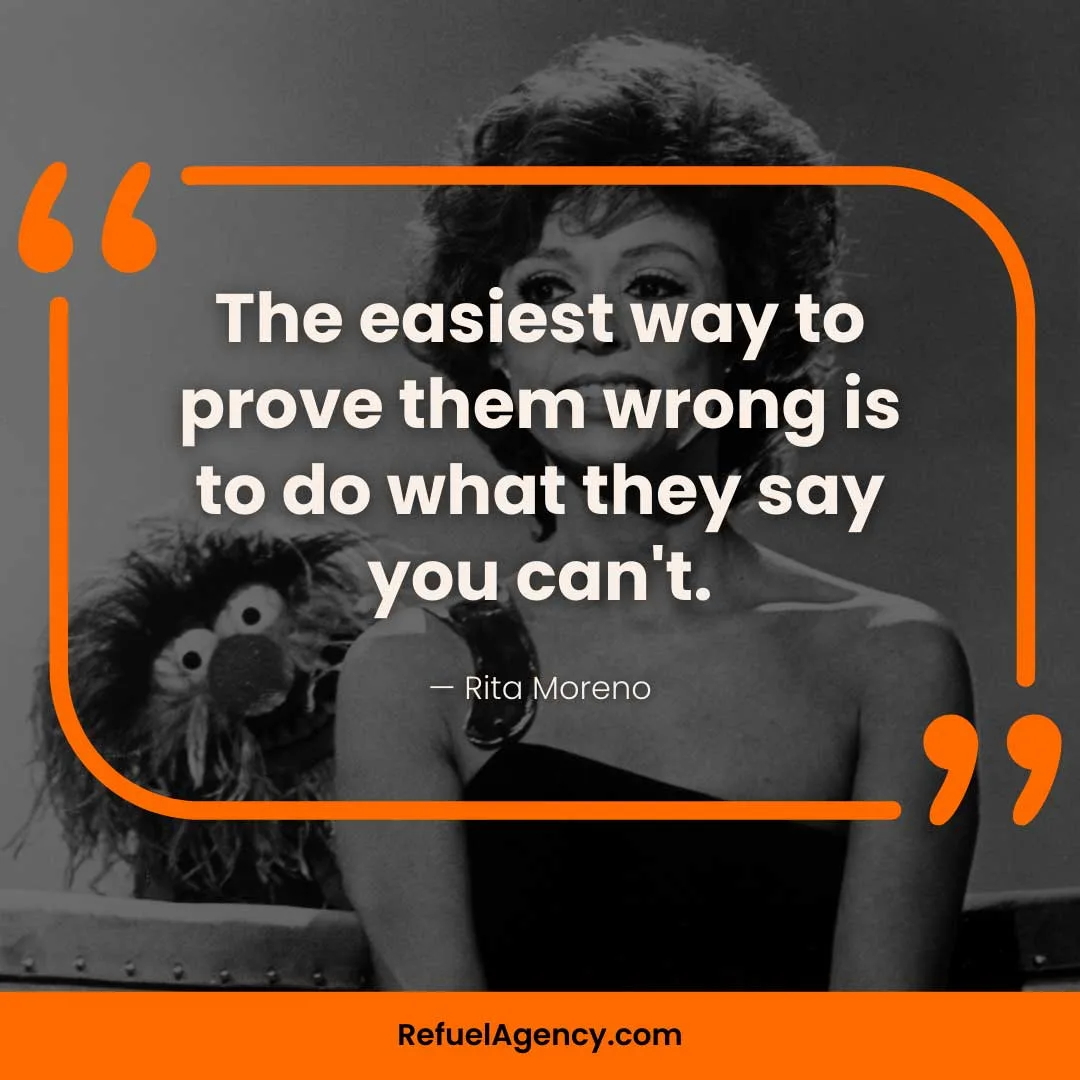 - “The easiest way to prove them wrong is to do what they say you can’t.”— Rita Moreno (actress)