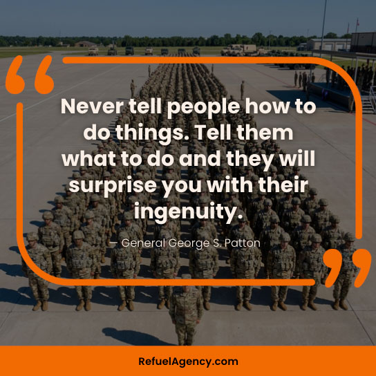 - “Never tell people how to do things. Tell them what to do and they will surprise you with their ingenuity.”— General George S. Patton