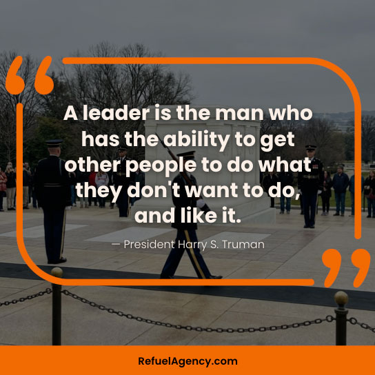 - “A leader is the man who has the ability to get other people to do what they don’t want to do, and like it.” — President Harry S. Truman
