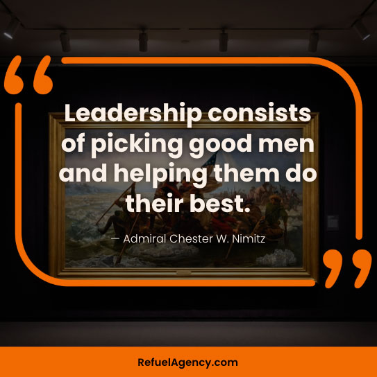 - “Leadership consists of picking good men and helping them do their best.” — Admiral Chester W. Nimitz
