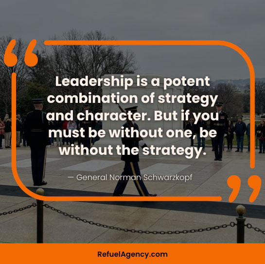 - “Leadership is a potent combination of strategy and character. But if you must be without one, be without the strategy.” — General Norman Schwarzkopf